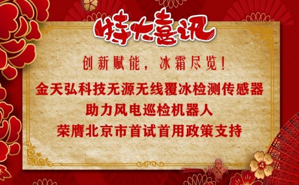 喜报!全球首创 — 金天弘科技无源无线覆冰检测传感器助力风电巡检机器人荣膺北京市首试首用政策支持